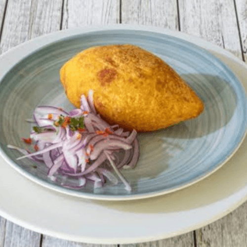 Deep fried mash potato stuffed with ground beef, olive, egg. served with salsa criolla on the side