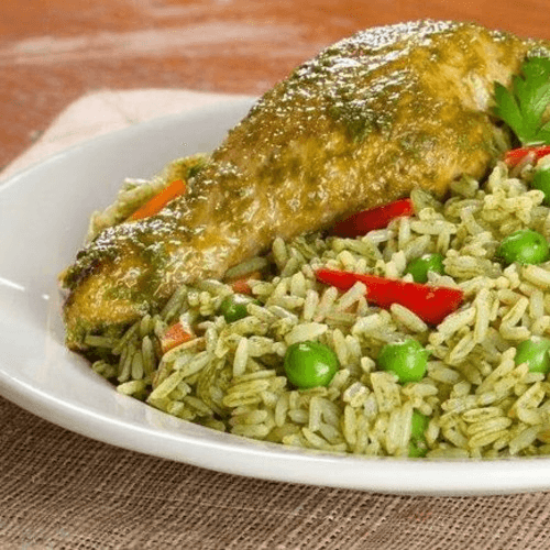 Cilantro rice and chicken| carrots peas, bell peppers