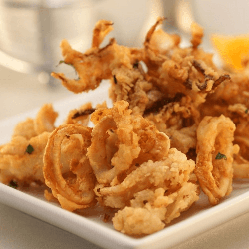 Fry mix seafood Shrimp, calamar, fish served with yuca, tartar sauce, red onion relish